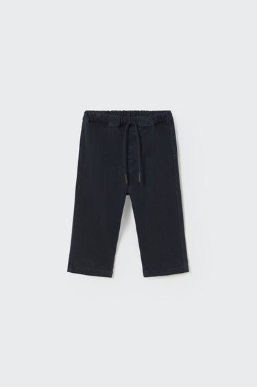These twill pants for babies are crafted for comfort, with a soft touch and a stretchy, flexible fit. Designed with an elastic adjustable waistband and a decorative drawstring for easy wear, plus a mock fly for a classic look. Slightly forward side seams enhance movement and comfort.