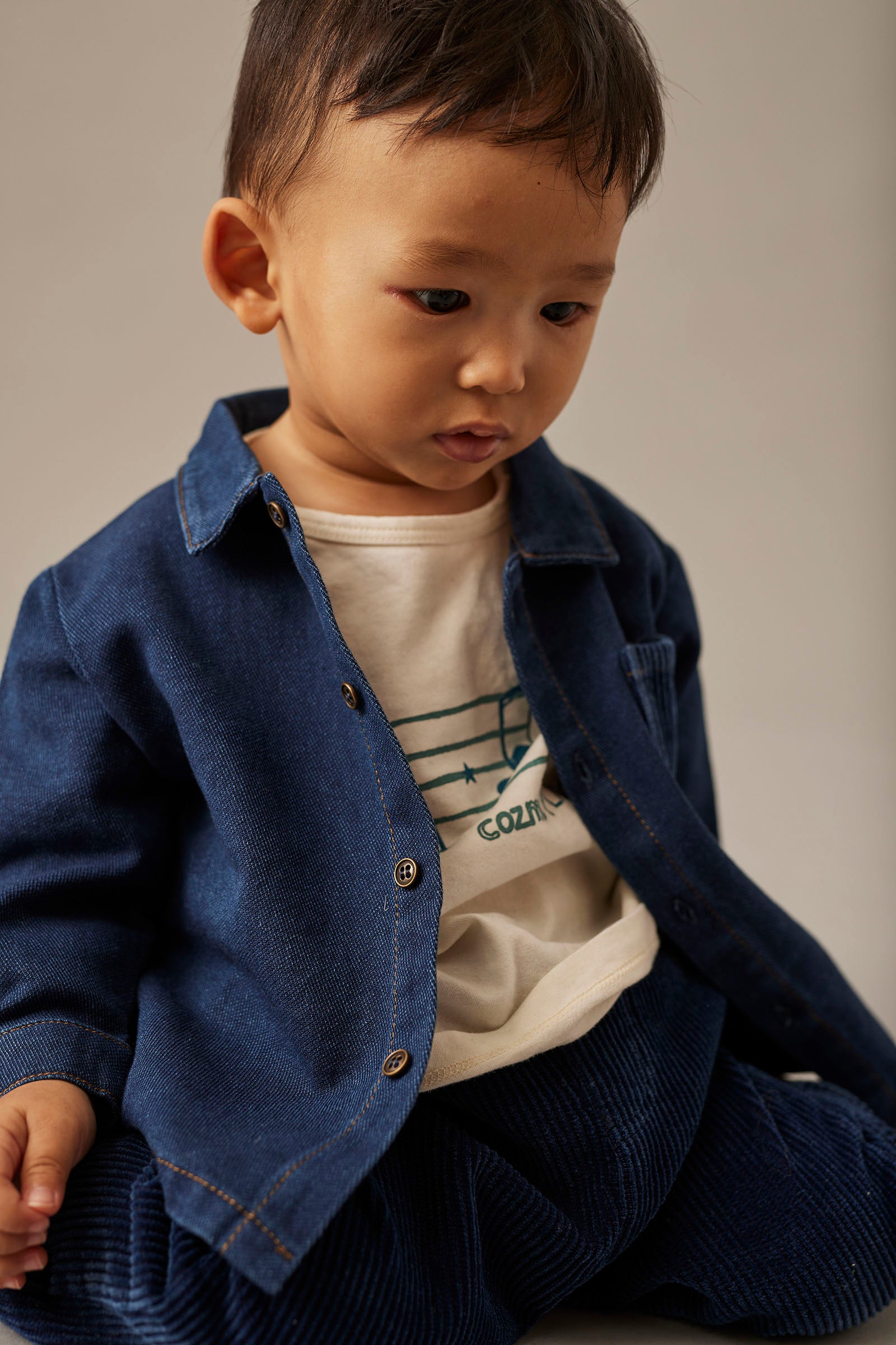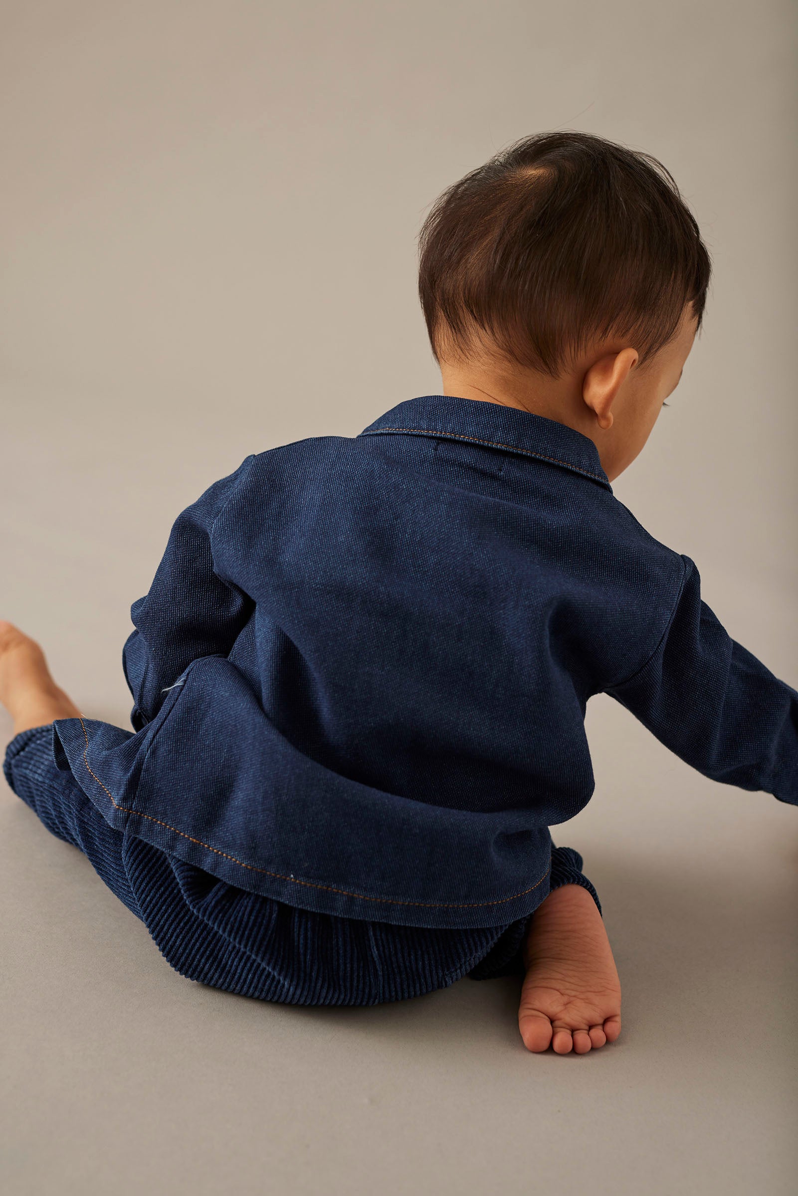 This baby denim shirt is crafted from 100% sustainable cotton, certified by the Better Cotton Initiative (BCI). Featuring a distinct twill weave, it has a classic collar and a button-down front placket for easy dressing. It also has a patch pocket on the chest made from soft denim corduroy. Buttoned cuff plackets complete the look.