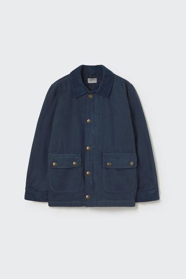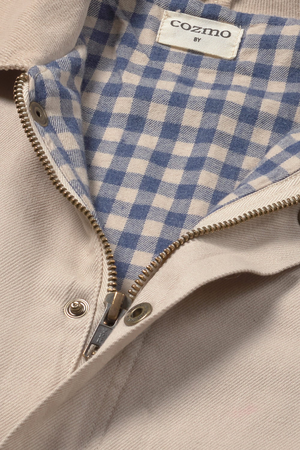 This kids’ jacket is made from GOTS-certified organic cotton twill with an ultra-smooth feel. It features a double closure with a zipper and tack buttons, and flap patch pockets at the front. The collar and cuffs are finished in matching corduroy for added texture. Fully lined in soft plaid fabric for comfort and warmth.