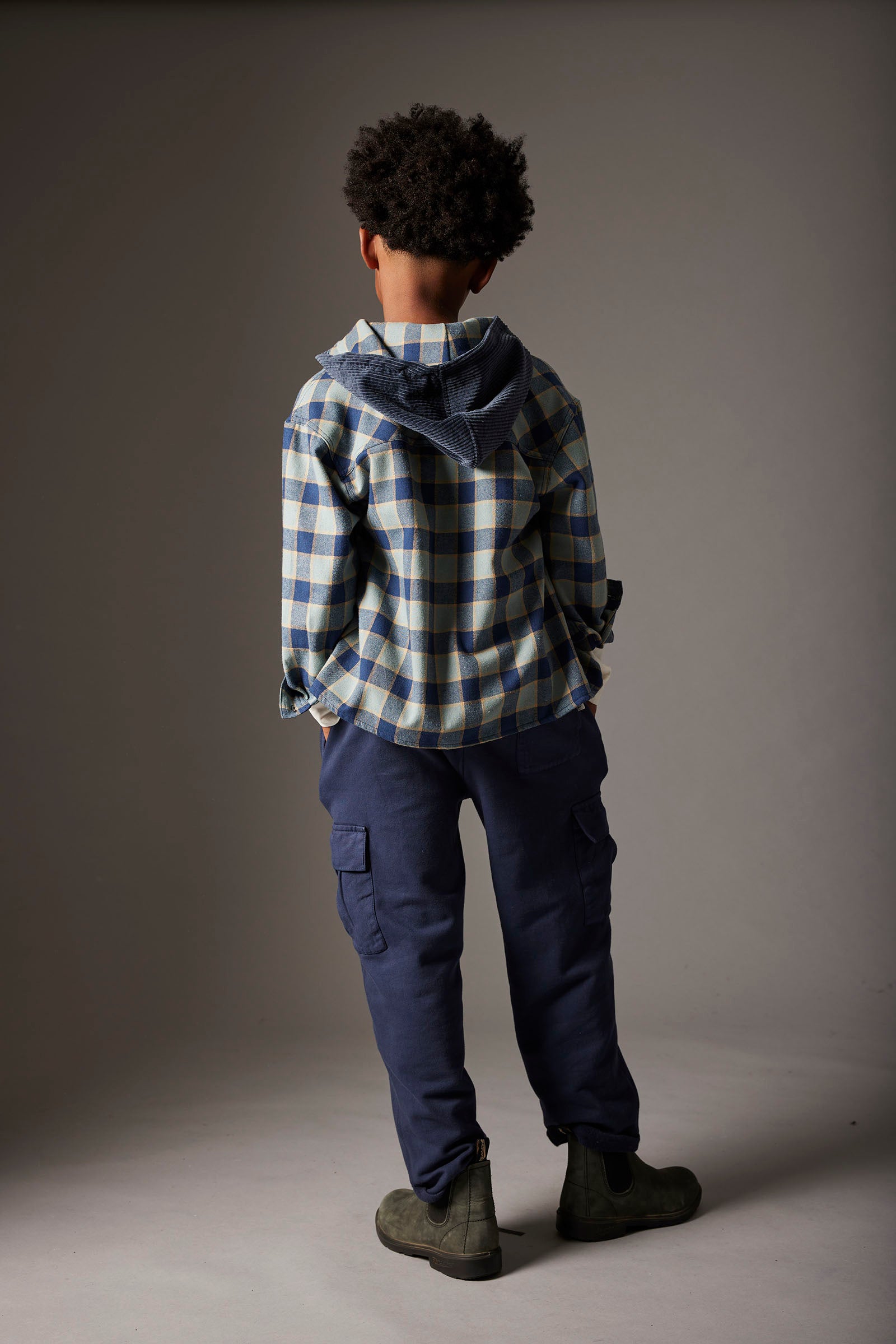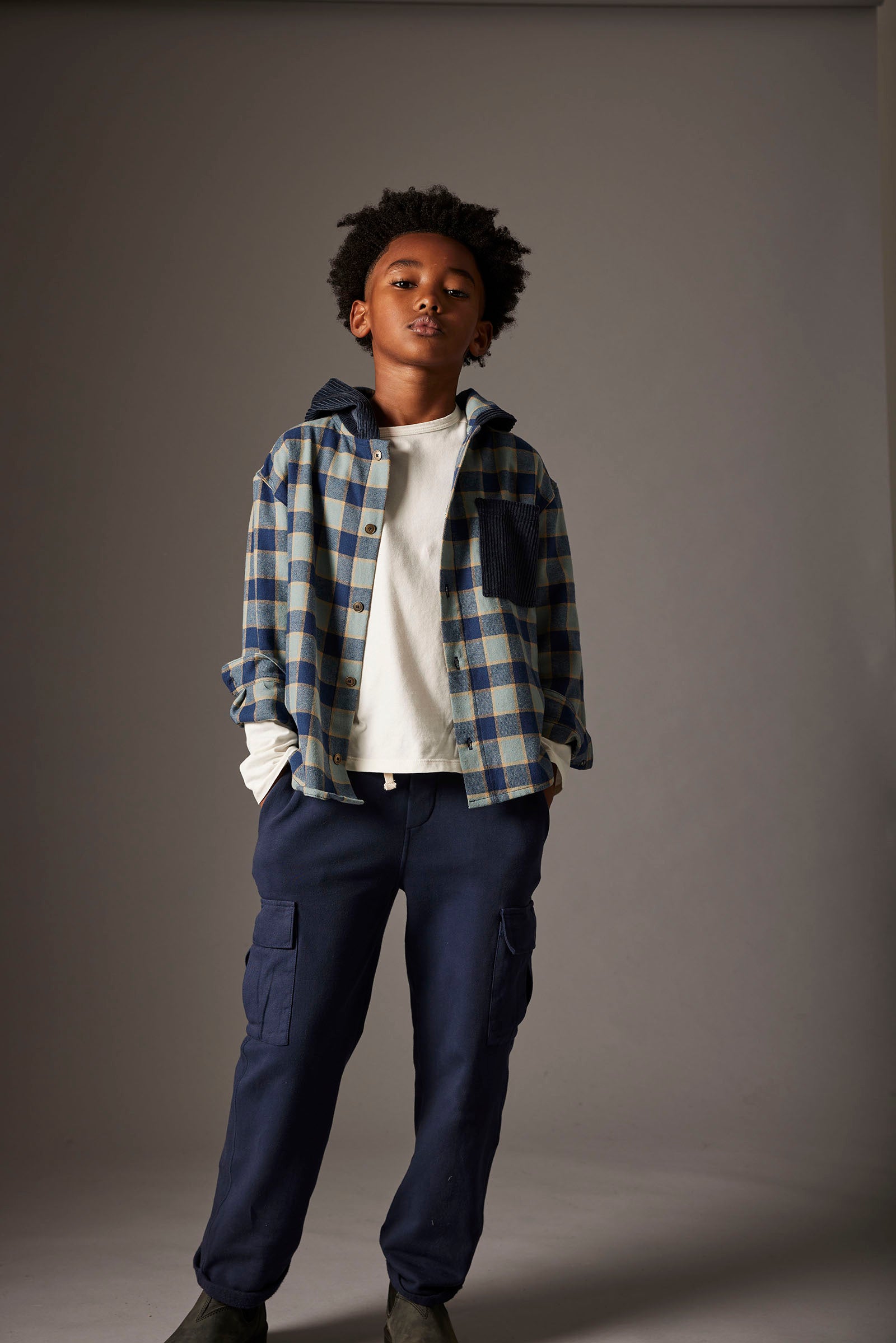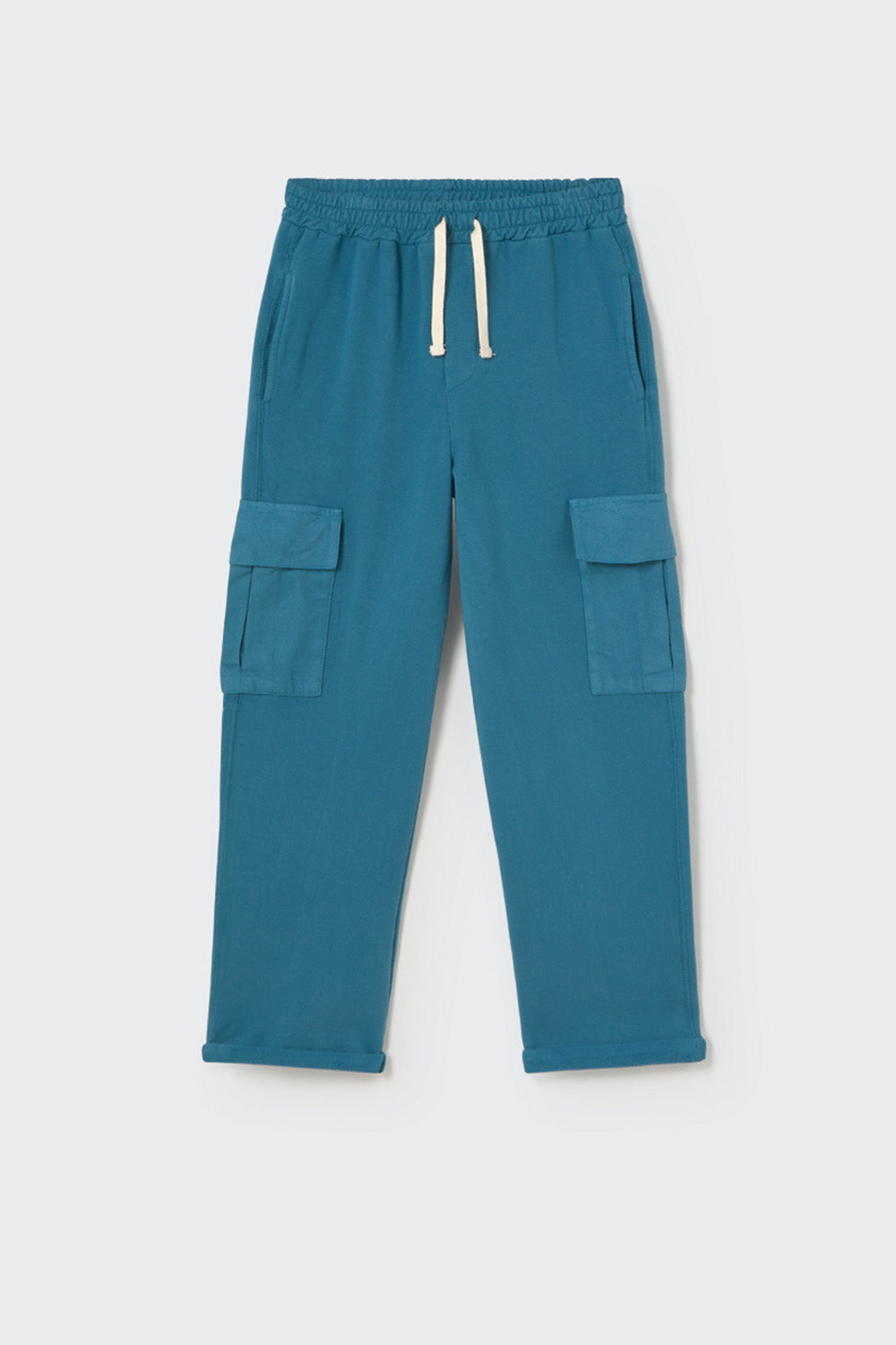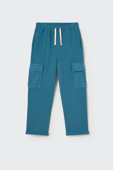 Part of Cozmo’s organic cotton kids clothes collection, these boys’ pants combine warmth and practicality. Made from premium brushed fleece, they feature an elasticized waistband with adjustable drawstrings, side pockets, and durable twill cargo pockets on the legs. Rolled-up hems and a twill back pocket add style and function. Smooth on the outside and soft, warm, and cozy inside, these pants are designed for everyday comfort.
