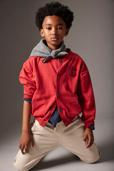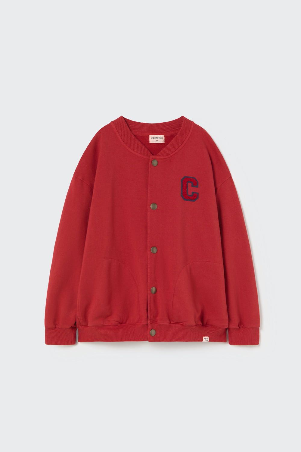 This cardigan sweater is part of our organic cotton kids clothes collection, made from premium brushed fleece. It features a rounded, ribbed neckline, snap button closure, dropped shoulders, and side pockets for convenience. Ribbed cuffs and hem provide a secure fit. Smooth on the outside and soft, warm, and cozy on the inside, it’s designed to keep kids comfortable. A patch "C" on the chest adds a subtle branded detail.