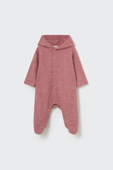 This hooded bearsuit is crafted from tender bamboo fabric with a soft mélange effect, designed for newborns. Featuring convenient buttons down the front and along the footed legs, it ensures easy dressing and changing while providing gentle warmth and comfort. Part of our bamboo newborn clothes collection.