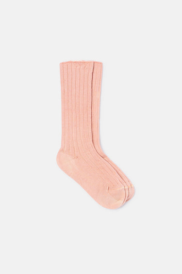 Organic, ribbed, calf-length socks. 74% organic cotton, 24% polyamide, 2% lycra. Knit