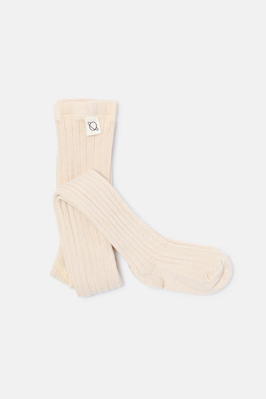 Organic, footed, ribbed tights with a gentle stretch and wide center gusset. 74% organic cotton, 24% polyamide, 2% lycra. Knit