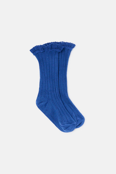 Organic, ribbed, ankle-length socks with lace trim. 74% organic cotton, 24% polyamide, 2% lycra. Knit