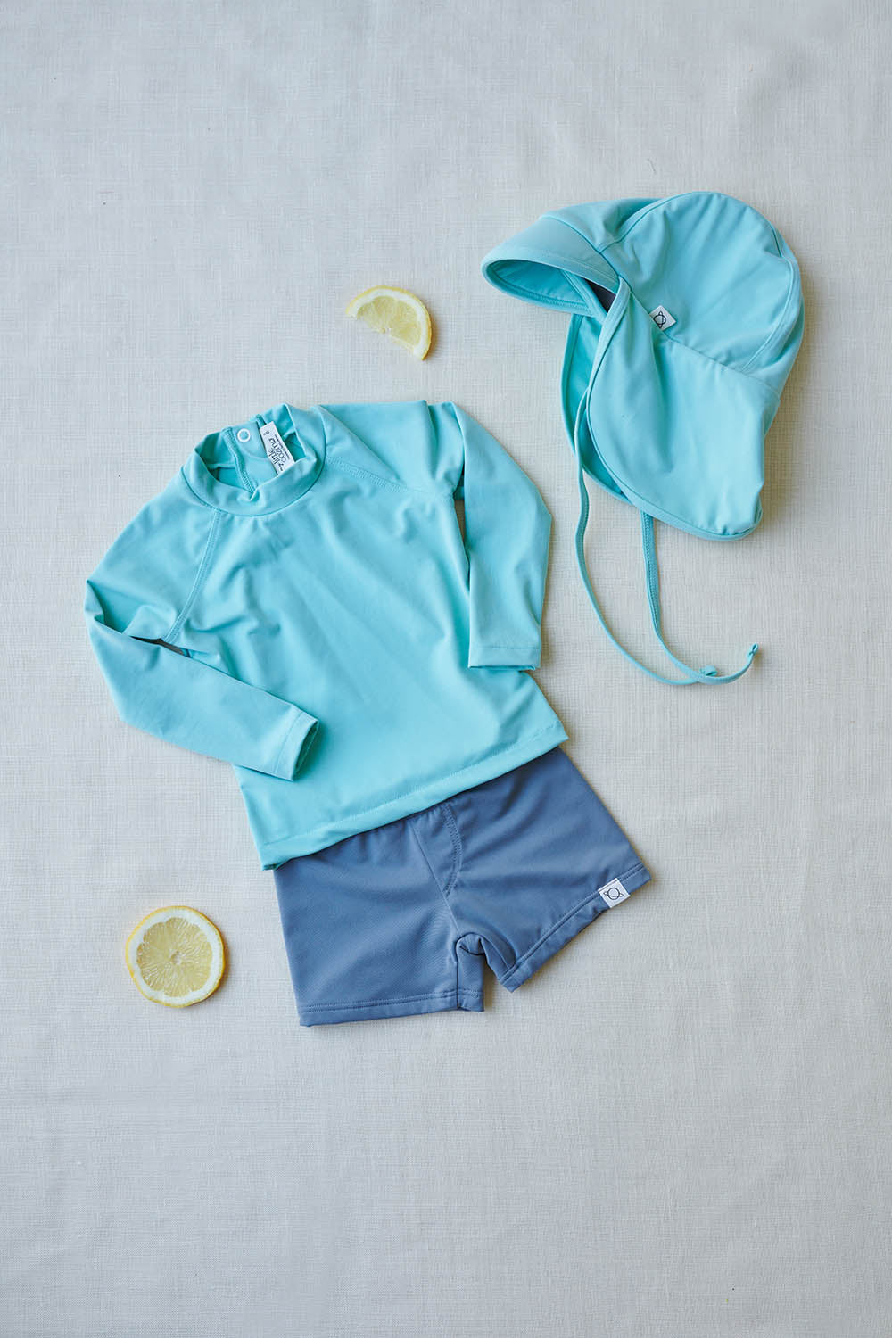 Your little one will be protected from the harsh rays of the sun with this recycled UV baby rash guard. Its super-drying fabric will also provide extra comfort on delicate skins. This recycled UV baby rash guard features long raglan sleeves and snap buttons at the back. It is also gentle on both the skin and the environment. That is because it is made from plastic waste, mainly from recycled fishing nets that pollute our oceans and marine life. This UV baby rash guard is knitted in 78% GRS and OEOKOTEK-certified recycled polyamide and 22% elastane. Available in green, taupe, grey, coral, and yellow.