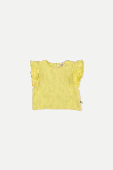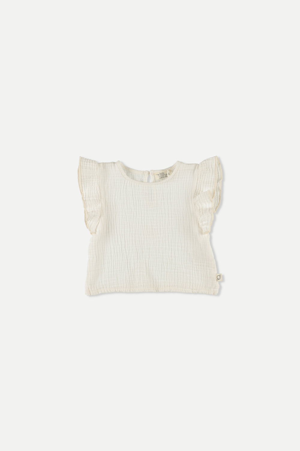 Top in soft, gauzy cotton. Round neckline and a keyhole closure at back. Flutter sleeves and side slits. Garment-dyed. 100% cotton. Woven