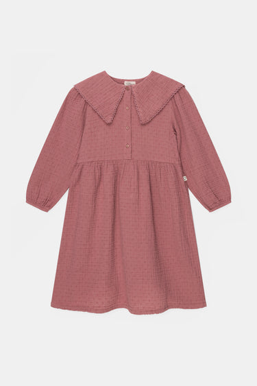 Introducing our textured dress made of organic cotton! This gauze outfit features a beautiful bib collar and a front placket with buttons for easy wear. The elasticized cuffs make it comfortable for your little one to move around. With a gathered seam at the top, it offers an added volume that adds a touch of style. You can be confident that the fabric of this girl gauze dress is certified by GOTS and OEKO-TEX. Choose from dark grey, mustard, stone, or pink.