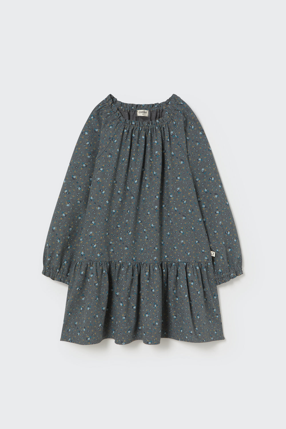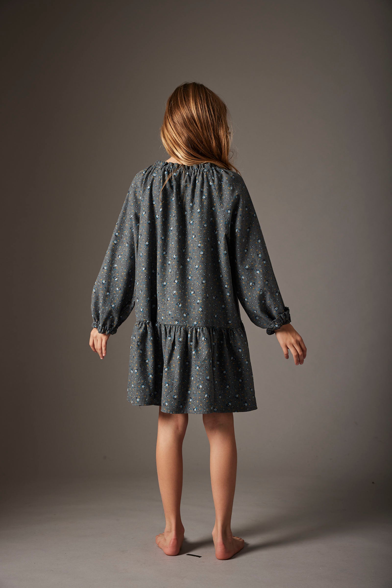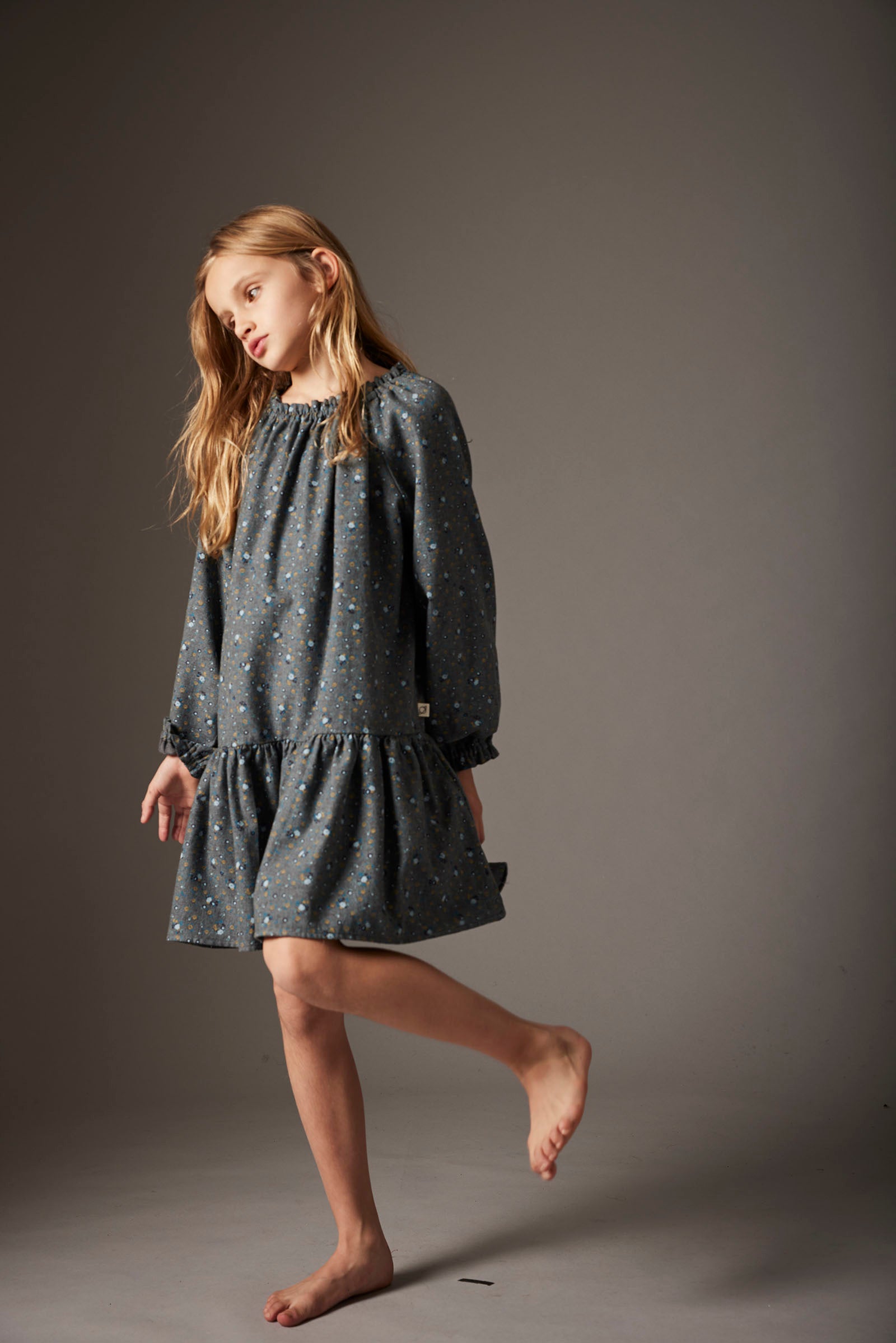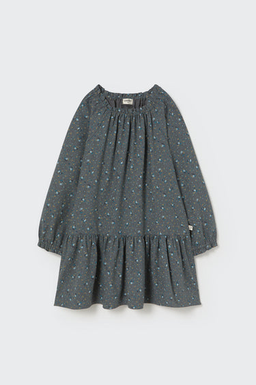 This soft flannel dress for girls features a delicate floral pattern and a subtle mélange effect. It has an elasticized round neckline with a sweet ruffle trim, long raglan sleeves with elastic cuffs, and gentle gathers at the lower section for a relaxed fit. A cozy and easy-to-wear piece for everyday moments.