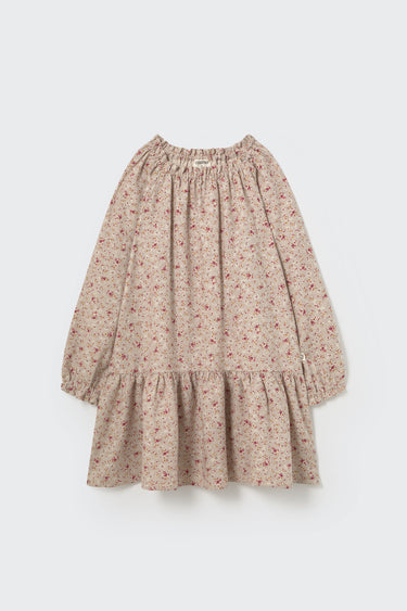 This soft flannel dress for girls features a delicate floral pattern and a subtle mélange effect. It has an elasticized round neckline with a sweet ruffle trim, long raglan sleeves with elastic cuffs, and gentle gathers at the lower section for a relaxed fit. A cozy and easy-to-wear piece for everyday moments.