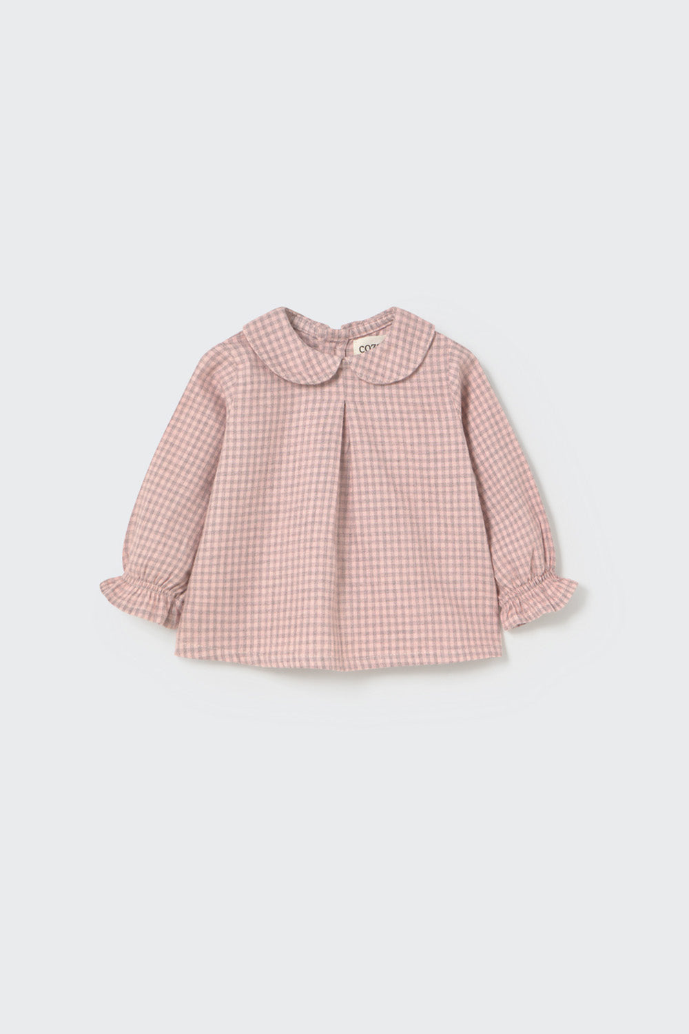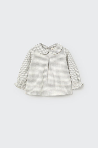 Mini Gingham Flannel Newborn Collar Top - Vico