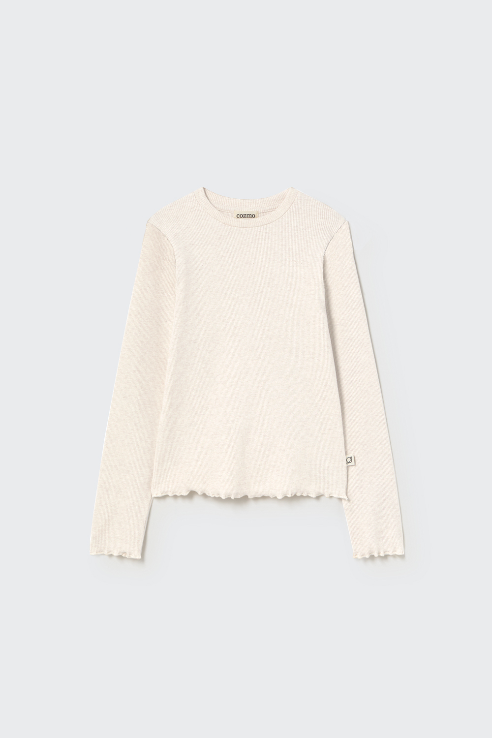 This girls' sweater is made from extra soft, warm ribbed cotton, perfect for keeping them cozy. It features a round neckline and charming ruffles over the shoulders in flannel with delicate lettuce-edge trim. Long sleeves and matching lettuce-edge trims at the cuffs and hem.