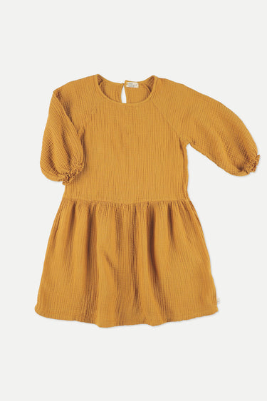 A-line dress in soft, gauzy cotton. Round neckline, long balloon sleeves, and elasticated cuffs. Keyhole closure at back and a visible seam above a flared skirt. Garment-dyed. 100% cotton. Woven