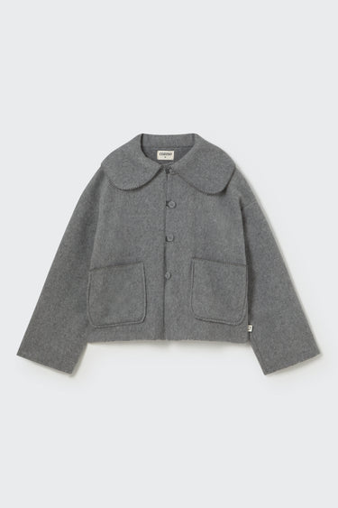 This jacket from our bamboo kids clothing collection is made of tender bamboo fabric with a soft mélange effect. It features a wide Peter Pan collar with neat stitching along the edges and a loop button closure at the front—offering gentle comfort and easy wear for girls.