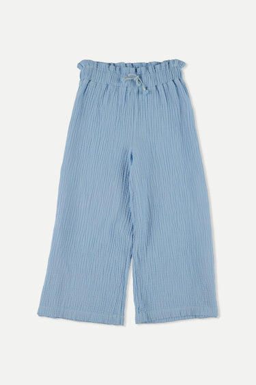 Pants in soft, gauzy cotton. Elastic waistband with a decorative drawstring and flared legs. Garment-dyed. 100% cotton. Woven