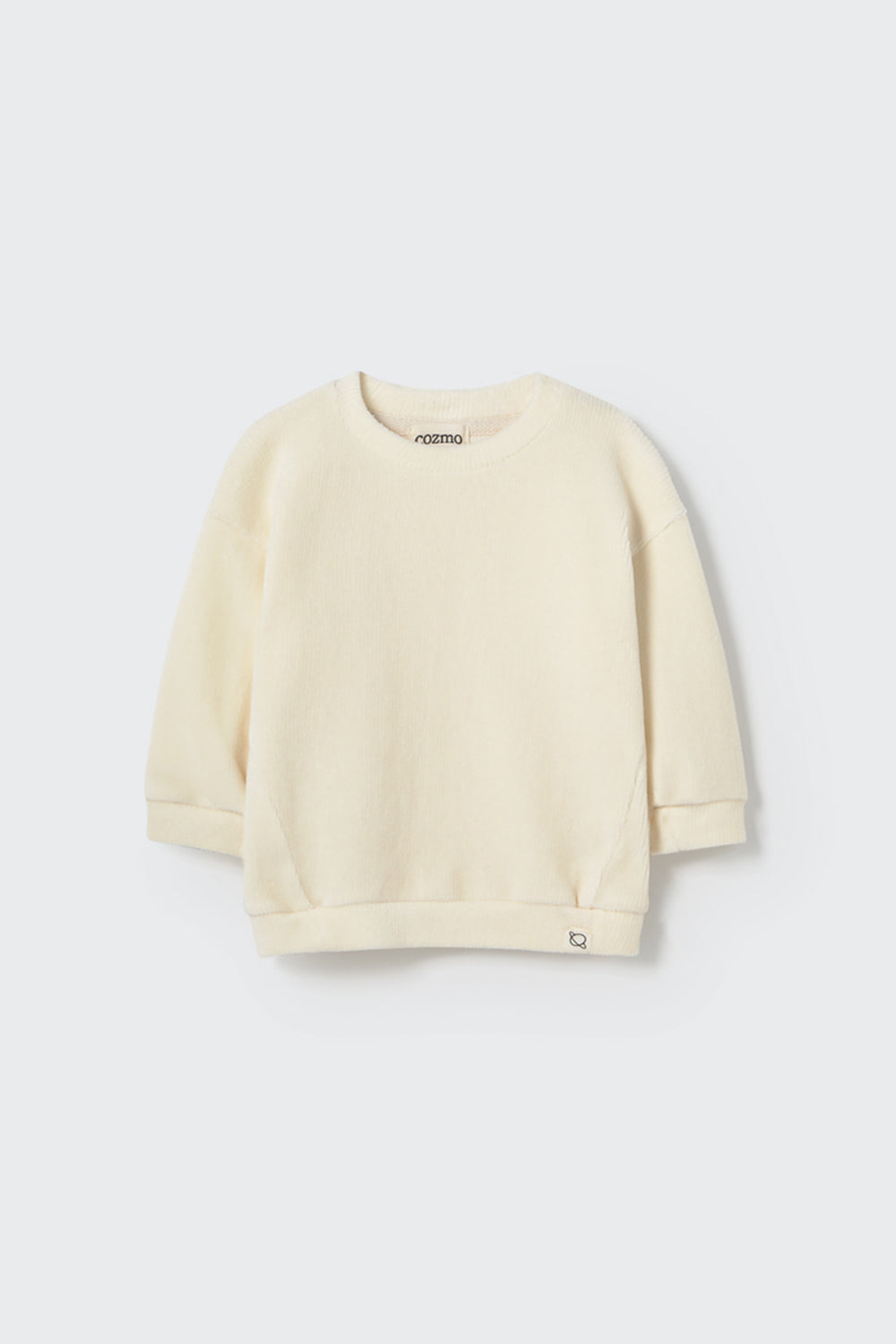 This sweatshirt for babies is made from knitted velour with a soft corduroy effect and an exceptionally gentle feel. Designed with a crew neckline, dropped shoulders, and forward side seams for a relaxed silhouette that allows freedom of movement. Crafted from GOTS-certified organic cotton to care for delicate skin and the planet. Cozy and perfect for everyday layering.