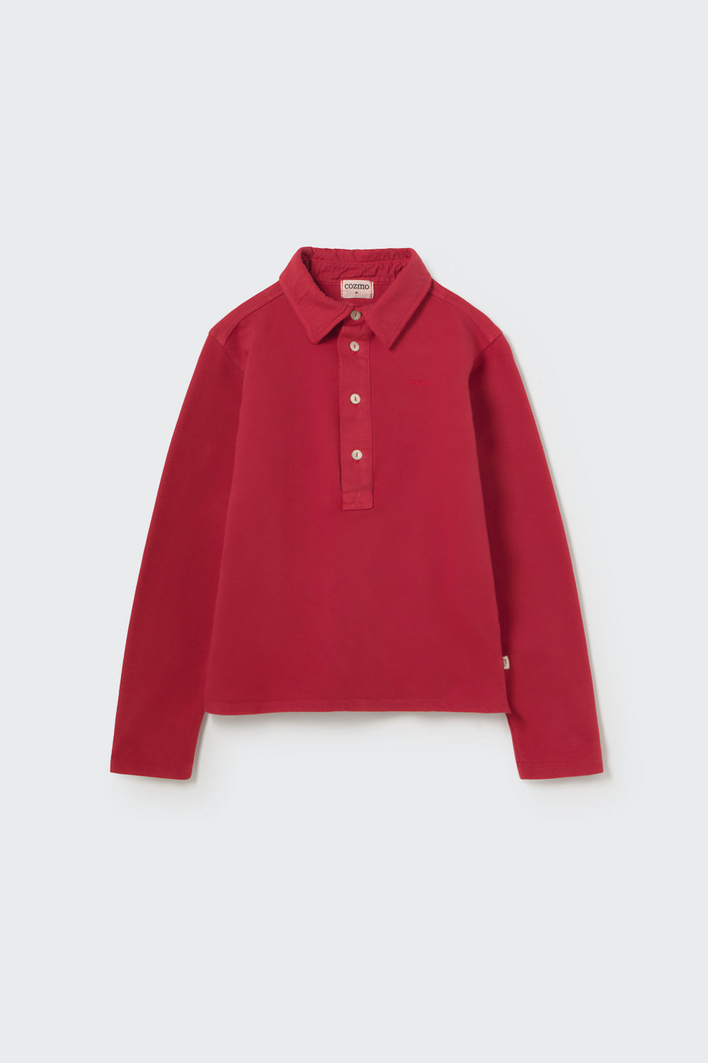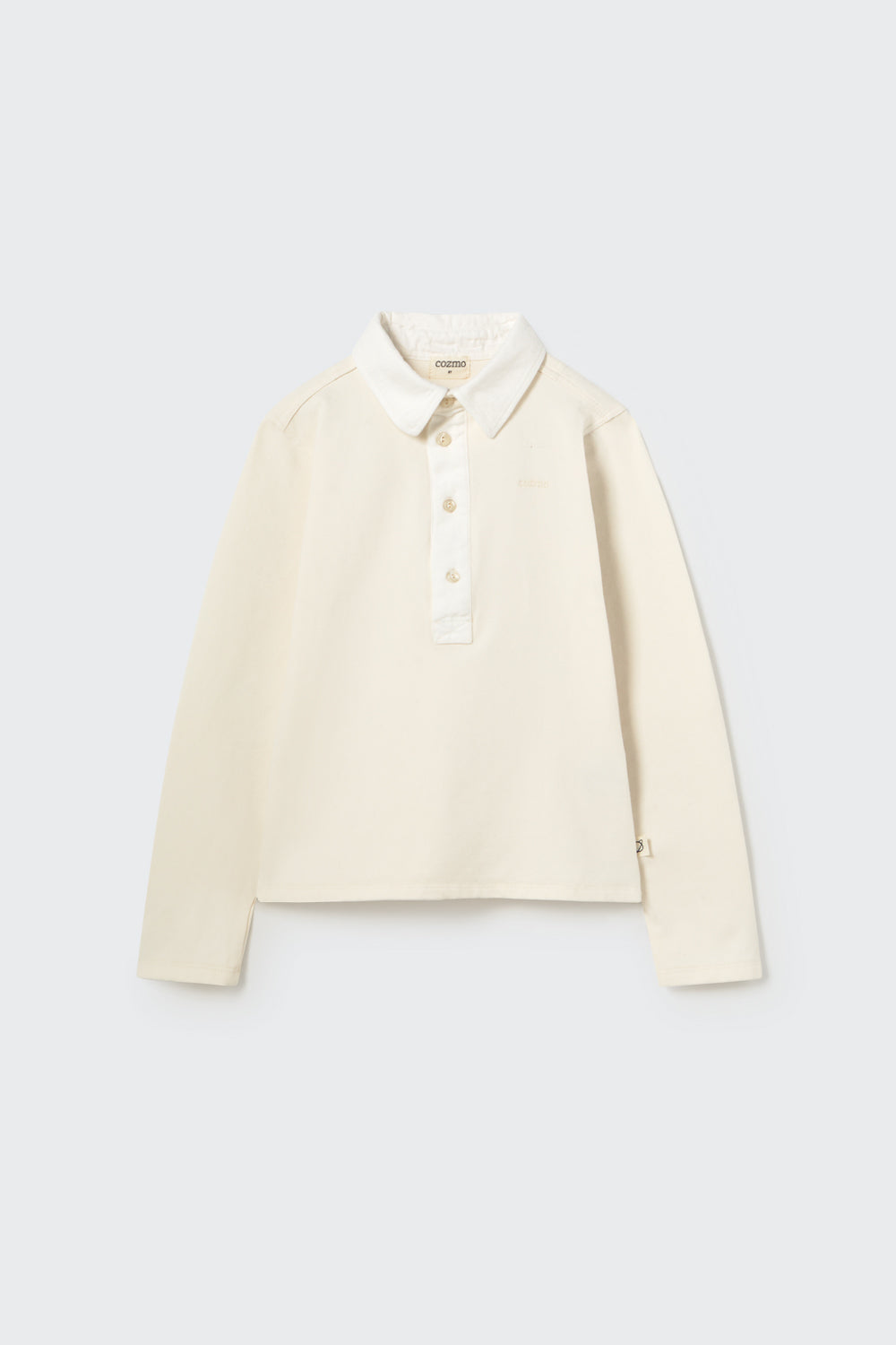 This boys’ sweatshirt is part of our organic cotton kids clothes collection, crafted from premium brushed fleece. It features a shirt collar with a button placket and twill fabric lining inside the collar for added detail. The rounded yoke at the back offers a classic touch. Smooth on the outside and soft, warm, and cozy on the inside, it’s perfect for keeping boys comfortable in cooler weather.