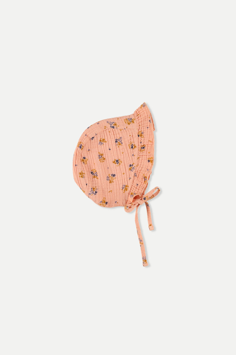 Keep your little one's head cozy with a baby bonnet. This newborn and infant bonnet is all soft, airy cotton. It's like a gentle hug. Bright flowers dance across this baby bonnet hat. Playful ruffles and easy-tie ribbons complete the look. Delight in the simple charm of our cotton bonnets, lovingly crafted for your baby's comfort.