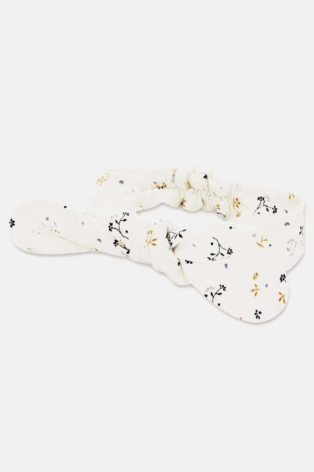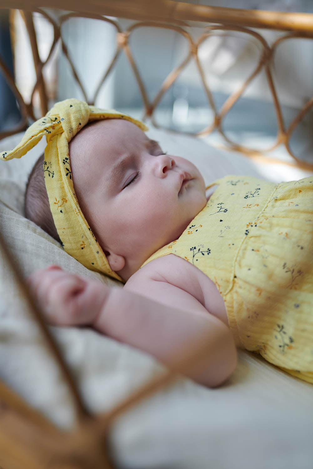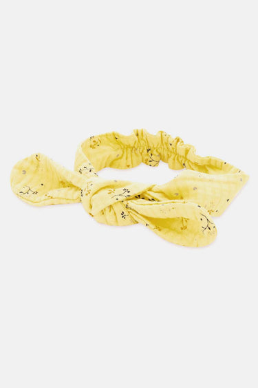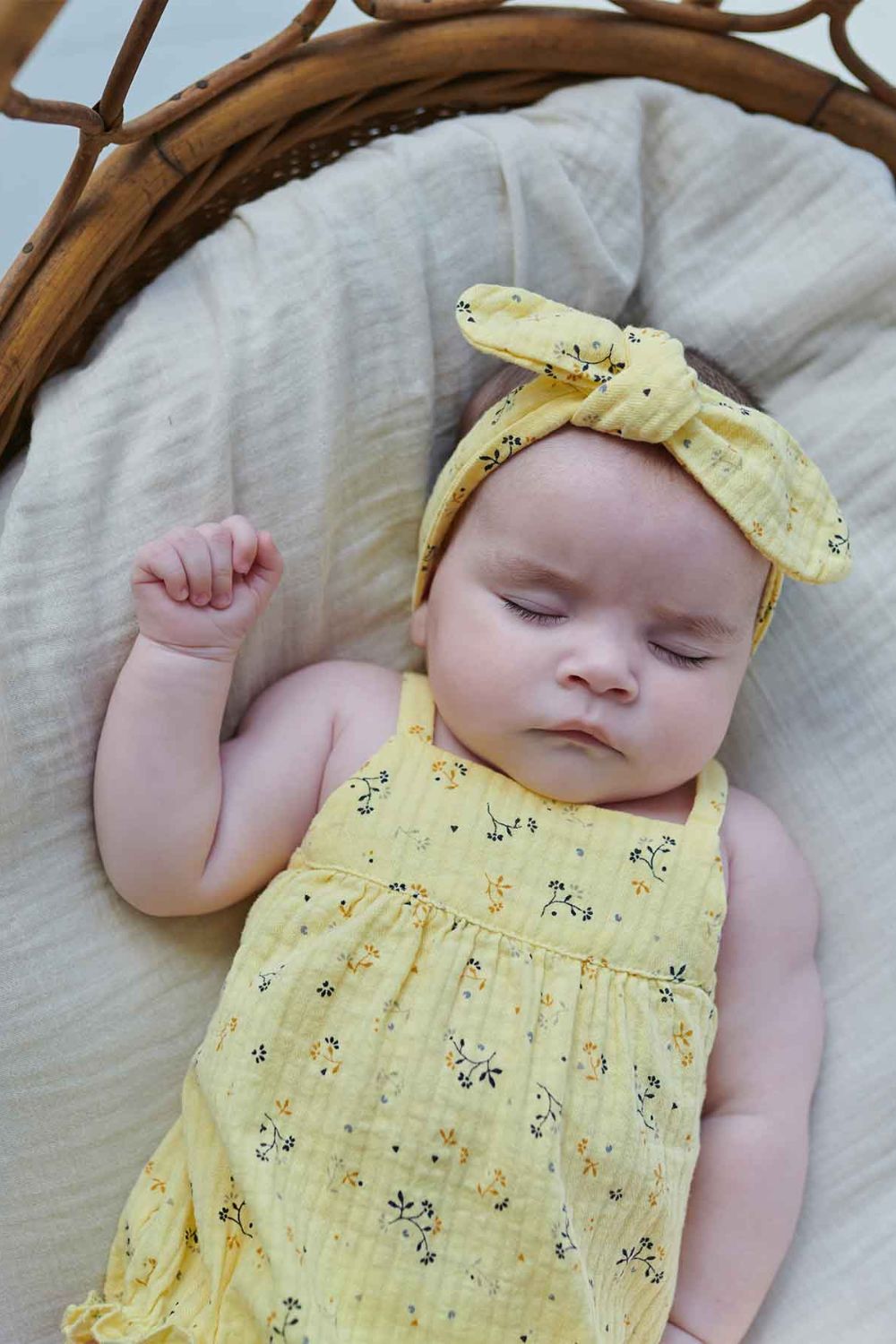 Their favorite outfits get even sweeter with this organic muslin baby hairband featuring a delicate floral print, a charming knot bow, and an elastic back. It is made from 100% GOTS-certified organic cotton. Available in ivory, yellow, coral, and soft grey.