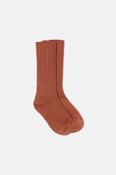 Organic, ribbed, calf-length socks. 74% organic cotton, 24% polyamide, 2% lycra. Knit