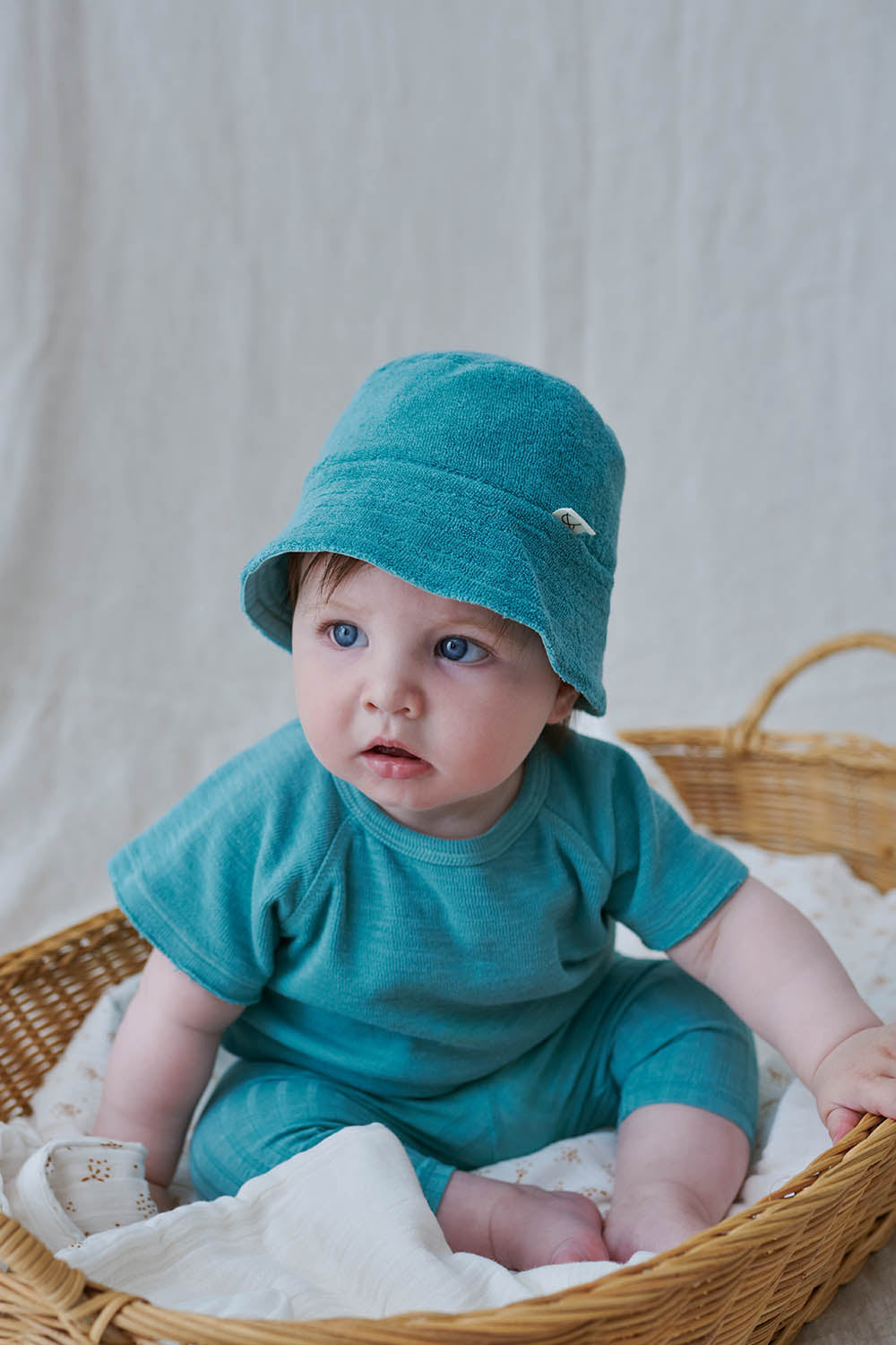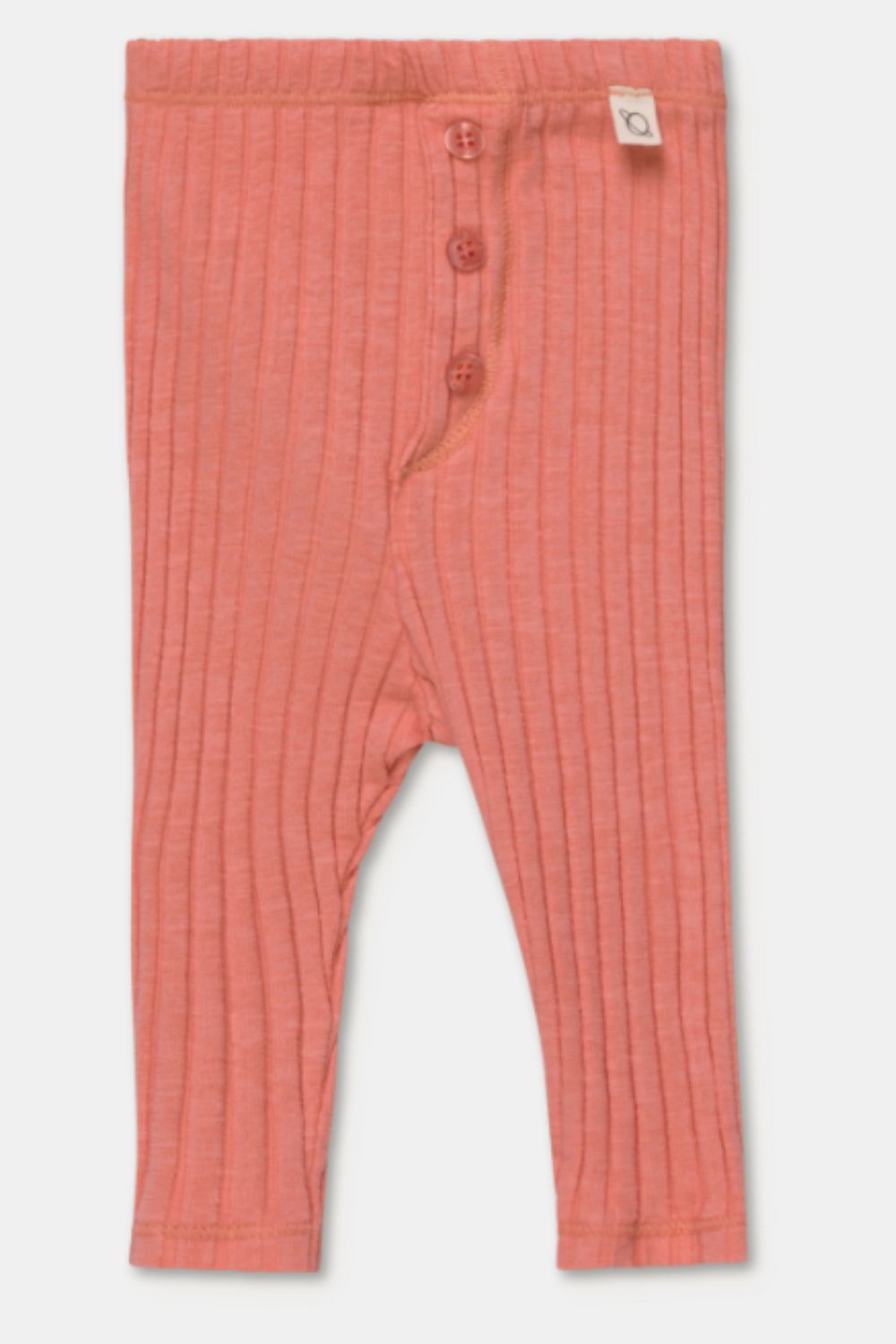 A spring basic and one of My Little Cozmo's classic pieces. Made in GOTS-certified organic cotton, these ribbed baby leggings are comfy, stretchy, and super soft. Truly, one of our most versatile cool-to-hot weather bottoms. These organic ribbed baby leggings feature decorative buttons at the mock fly. They are made in 94% organic cotton and 6% elastane. Available in ivory, coral, soft grey, green, dark blue, and blue.