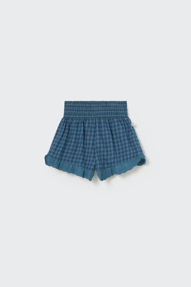 These girls’ shorts are crafted from soft, brushed flannel in a classic gingham plaid pattern, made from 100% sustainable cotton. Featuring a smocked wide waistband for a comfortable fit and ruffled lace trim details at the hems in contrasting fabric. Warm and smooth to the touch, perfect for layering in cooler weather.