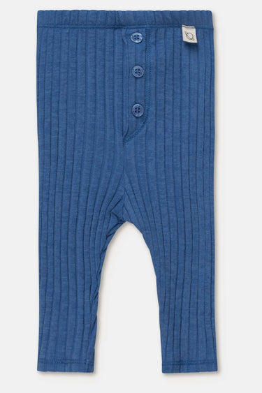 A spring basic and one of My Little Cozmo's classic pieces. Made in GOTS-certified organic cotton, these ribbed baby leggings are comfy, stretchy, and super soft. Truly, one of our most versatile cool-to-hot weather bottoms. These organic ribbed baby leggings feature decorative buttons at the mock fly. They are made in 94% organic cotton and 6% elastane. Available in ivory, coral, soft grey, green, dark blue, and blue.