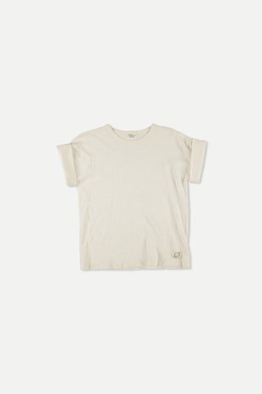 T-shirt in lightweight and breathable organic slub cotton. Round neckline. Foldover short sleeves. Garment-dyed. 100% organic cotton. Knit