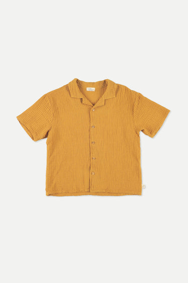 Shirt in soft, gauzy cotton. Camp collar, short sleeves, and buttons at front. Garment-dyed. 100% cotton. Woven