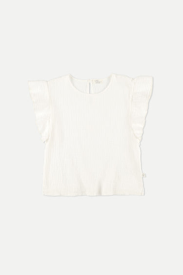 Top in soft, gauzy cotton. Round neckline and keyhole closure at back. Flutter sleeves and side slits. Garment-dyed. 100% cotton. Woven