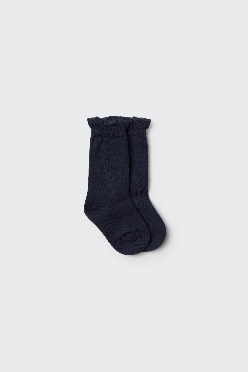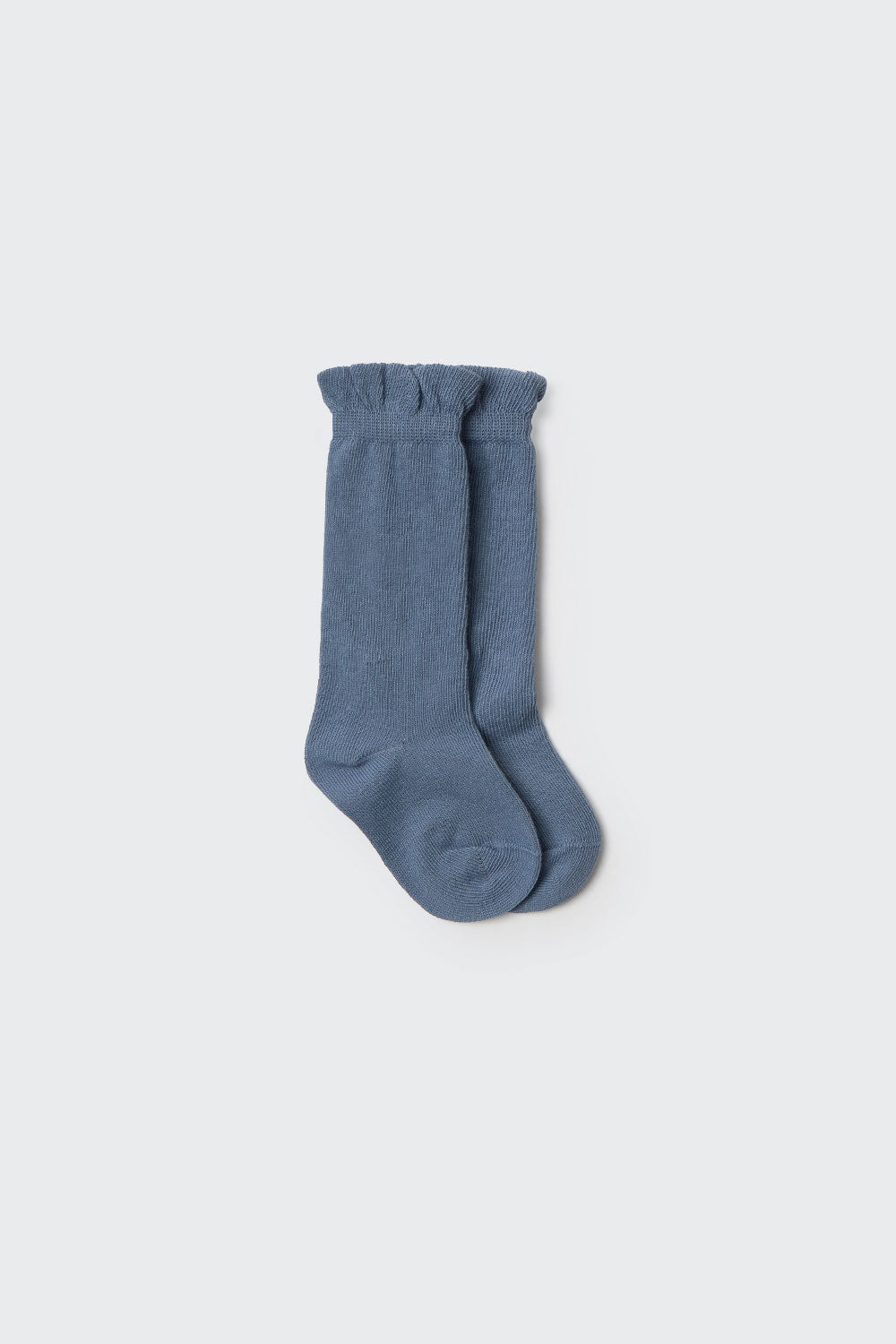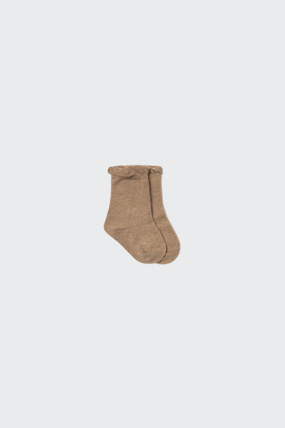 Socks made from warm, GOTS-certified organic combed cotton. They feature a ruffle trim at the cuff and offer a snug, flexible fit—perfect for keeping baby girls cozy and comfortable.