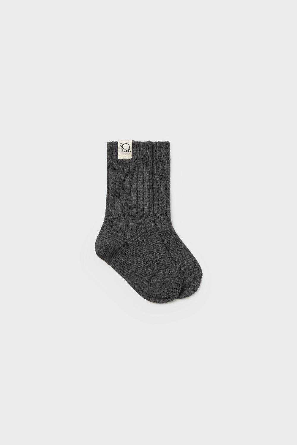 Ribbed socks crafted from warm, GOTS-certified organic combed cotton. Ankle-length design with a snug, flexible fit to keep babies comfortable and cozy all day.