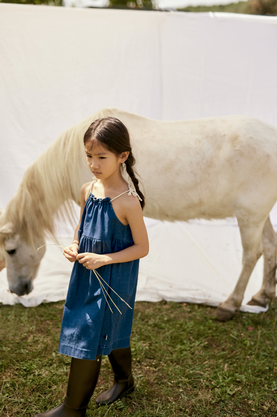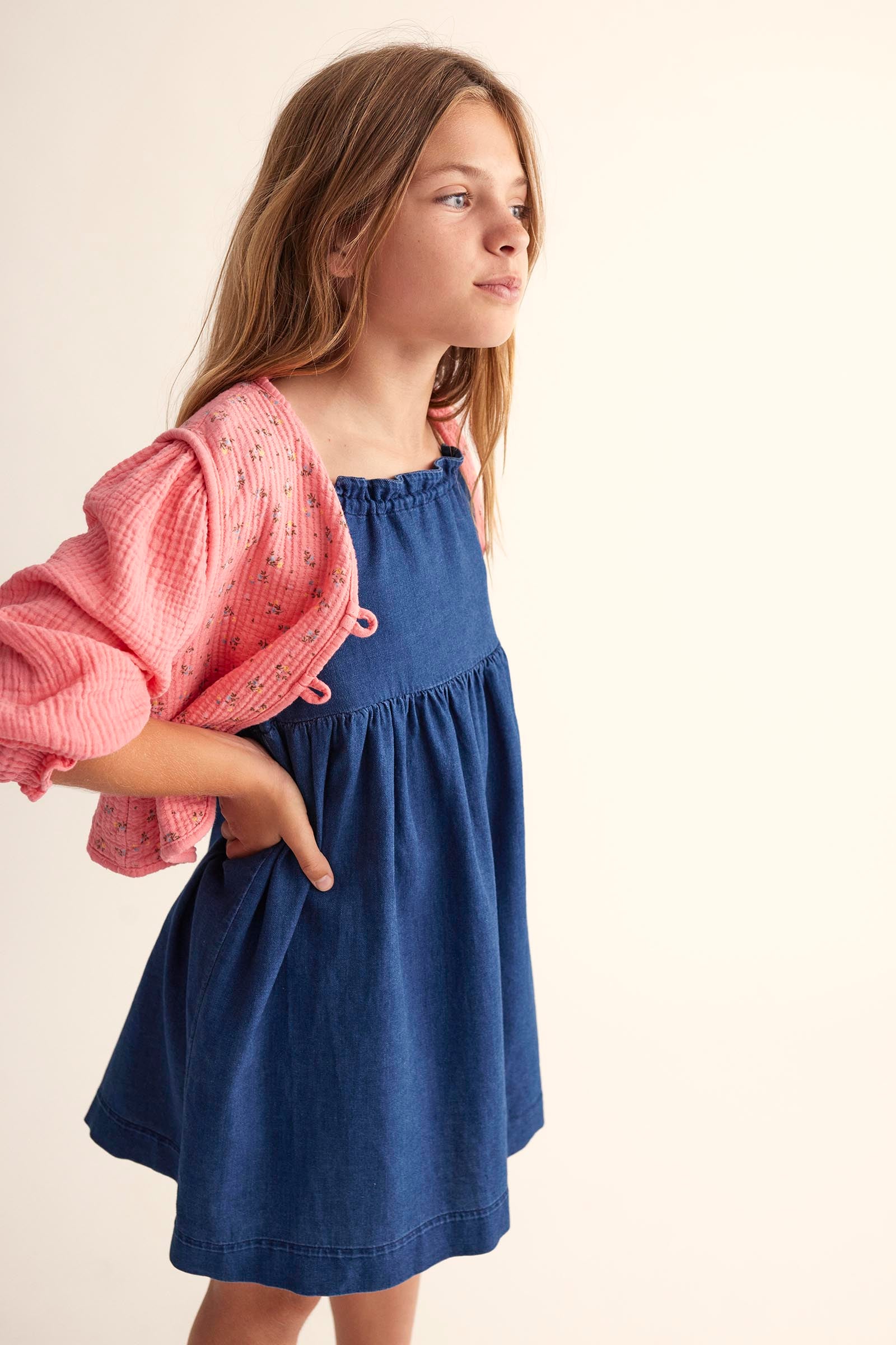 Elevate your little one’s wardrobe with the Girls' Denim Dress! Crafted from ultra-soft twill cotton, this dreamy dress is perfect for twirling through sunny afternoons and playdates galore. The sleeveless design features adjustable drawstring straps that grow with her, ensuring a flawless fit every time. With its charming gathered upper section and trendy washed denim effect, she’ll radiate effortless style while remaining comfy all day long.