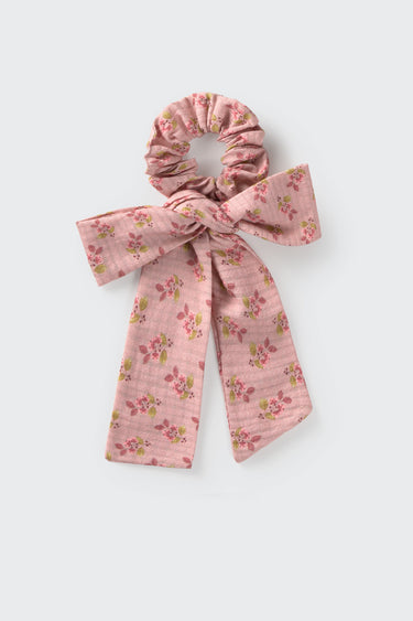 Coletero para niña, hecho de algodón sostenible texturizado con un estampado floral. Es elástico para una sujeción más cómoda e incluye lazos que se pueden convertir en un lazo. Un accesorio ecológico para completar cualquier peinado.