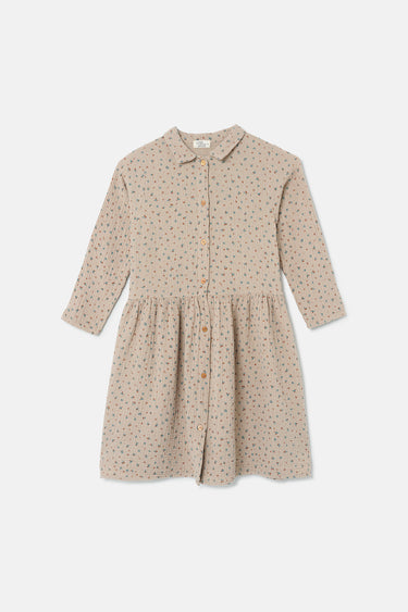 Vestido de gasa suave con estampado floral Liberty. Cuello camisero, mangas largas y cierre con botones en la parte delantera. Falda fruncida. Efecto arrugado. 100 % algodón. Tejido Las fibras de esta prenda están certificadas como sostenibles por la Better Cotton Initiative (BCI).