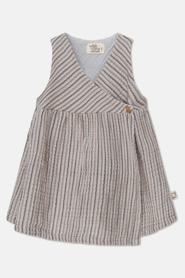 VESTIDO BEBÉ CRUZADO CON ESTAMPADO RAYAS DE GASA