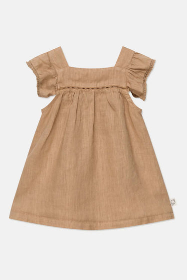 Este vestido 100 % lino está listo para el verano. Ya sea para la playa o para un paseo nocturno por el parque, es la prenda que el armario de tu hija estaba esperando.