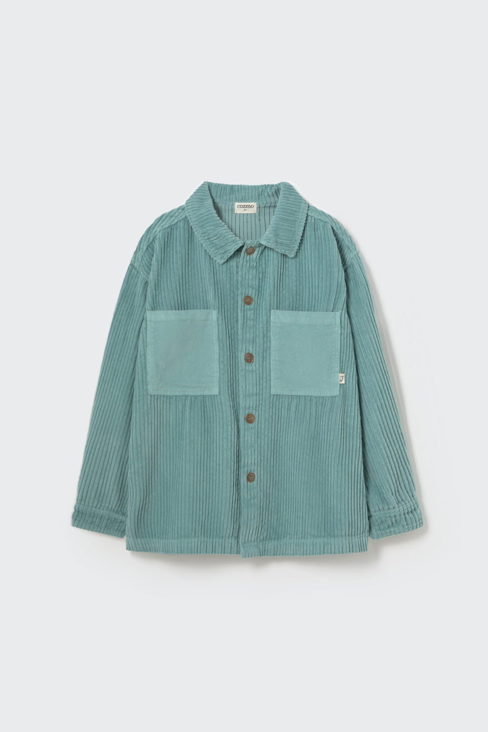 Camisa ancha de pana, súper suave y acogedora, confeccionada con algodón orgánico con certificación OCS y OEKO-TEX. Presenta cuello interior de pana en contraste, botones metálicos en la parte delantera, dos bolsillos de parche en el pecho de pana en contraste, puños forrados con tela Cozmo y canesú trasero. Suave al tacto y muy cómoda. Diseñada para niños.