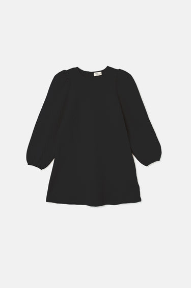 Vestido con estampado acolchado en zigzag. Mangas largas abullonadas, cierre de botones en la espalda y puños de canalé. 100 % algodón.