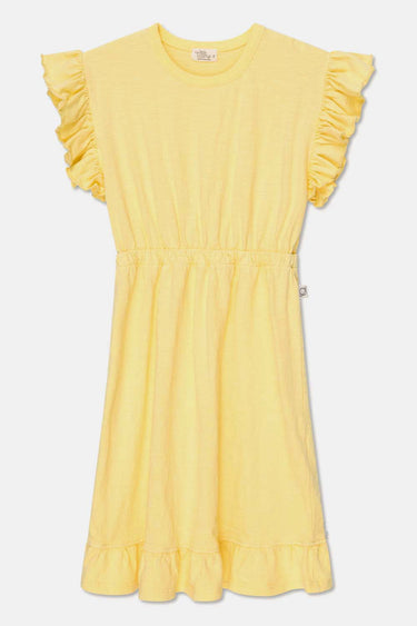 Este vestido orgánico se convertirá en el favorito de tu pequeño, ya sea para ir a la escuela o para jugar. Tiene detalles de volantes en las mangas y el dobladillo, cintura elástica fruncida y una abertura con botones en el hombro. Está confeccionado en 100 % algodón orgánico con certificación GOTS. Disponible en coral, marfil, amarillo, verde, petróleo y azul.