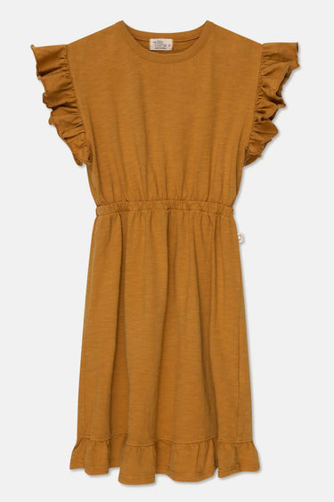 Este vestido orgánico se convertirá en el favorito de tu pequeño, ya sea para ir a la escuela o para jugar. Tiene detalles de volantes en las mangas y el dobladillo, cintura elástica fruncida y una abertura con botones en el hombro. Está confeccionado en 100 % algodón orgánico con certificación GOTS. Disponible en coral, marfil, amarillo, verde, petróleo y azul.