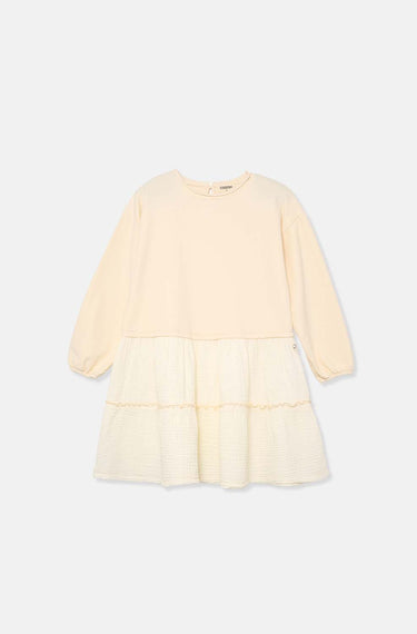 Descubre la calidez de nuestro vestido para niñas. Les espera un tejido ultra suave. Lo hemos cepillado en el interior, lo que mejora la comodidad con una textura afelpada. La combinación de tejidos aporta un toque distintivo. Elegante y cómodo para muchas ocasiones.