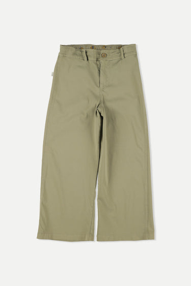 Pantalones de sarga de algodón suave y cómoda. Cintura elástica ajustable para mayor comodidad. Cierre de cremallera con botón y dobladillos acampanados. Bolsillos de parche en la parte posterior. Teñido en prenda. 58 % algodón, 40 % viscosa, 2 % elastano. Tejido