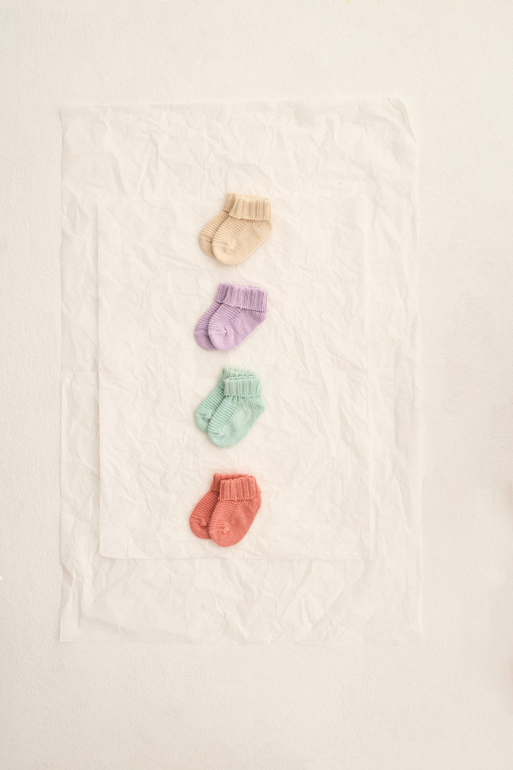 Calcetines de algodón ligero tricot para recién nacido con un delicado diseño calado. Presentan canalé en la zona del tobillo para un ajuste cómodo y seguro.