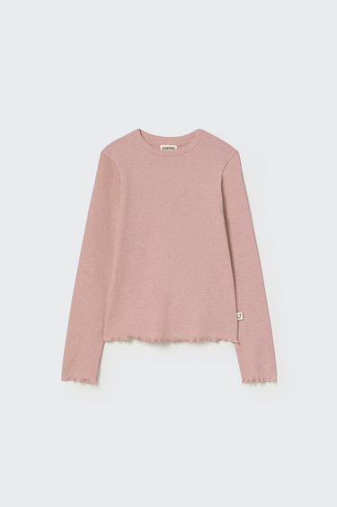 Este suéter para niña está confeccionado en algodón acanalado extrasuave y cálido, perfecto para mantenerlas abrigadas. Presenta cuello redondo y encantadores volantes sobre los hombros en franela con un delicado ribete ondulado. Mangas largas y ribetes ondulados a juego en puños y bajo.