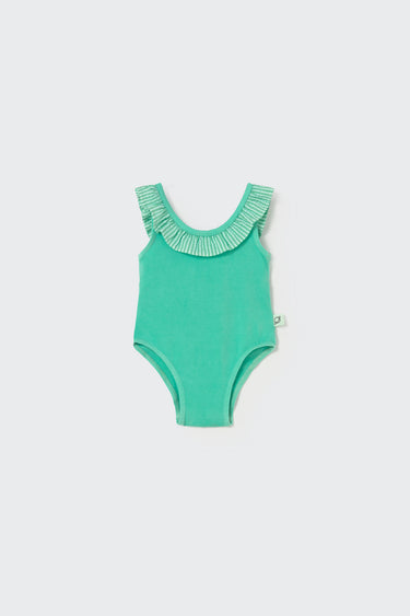 Confeccionado en una suave y resistente mezcla de poliéster y poliamida reciclados, es delicado con la piel de tu bebé y respetuoso con el planeta. El tejido se seca rápidamente y resiste el cloro, el agua salada y los rayos del sol, para que tu pequeña pueda disfrutar sin preocupaciones de cada aventura acuática.