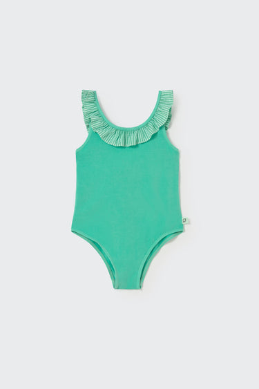 - Bañador de una pieza para niña en tejido reciclado ecológico.