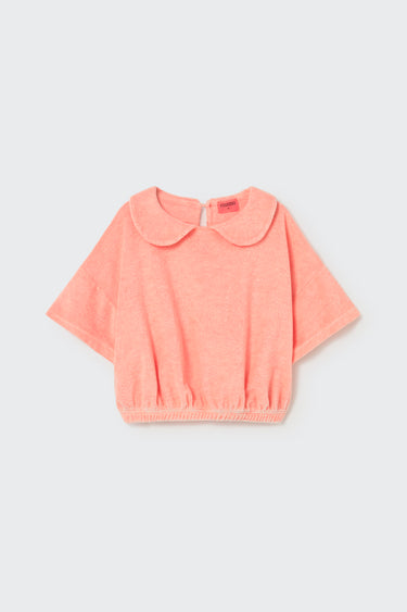 • Top de toalla para niña en mezcla de algodón orgánico y poliéster reciclado.