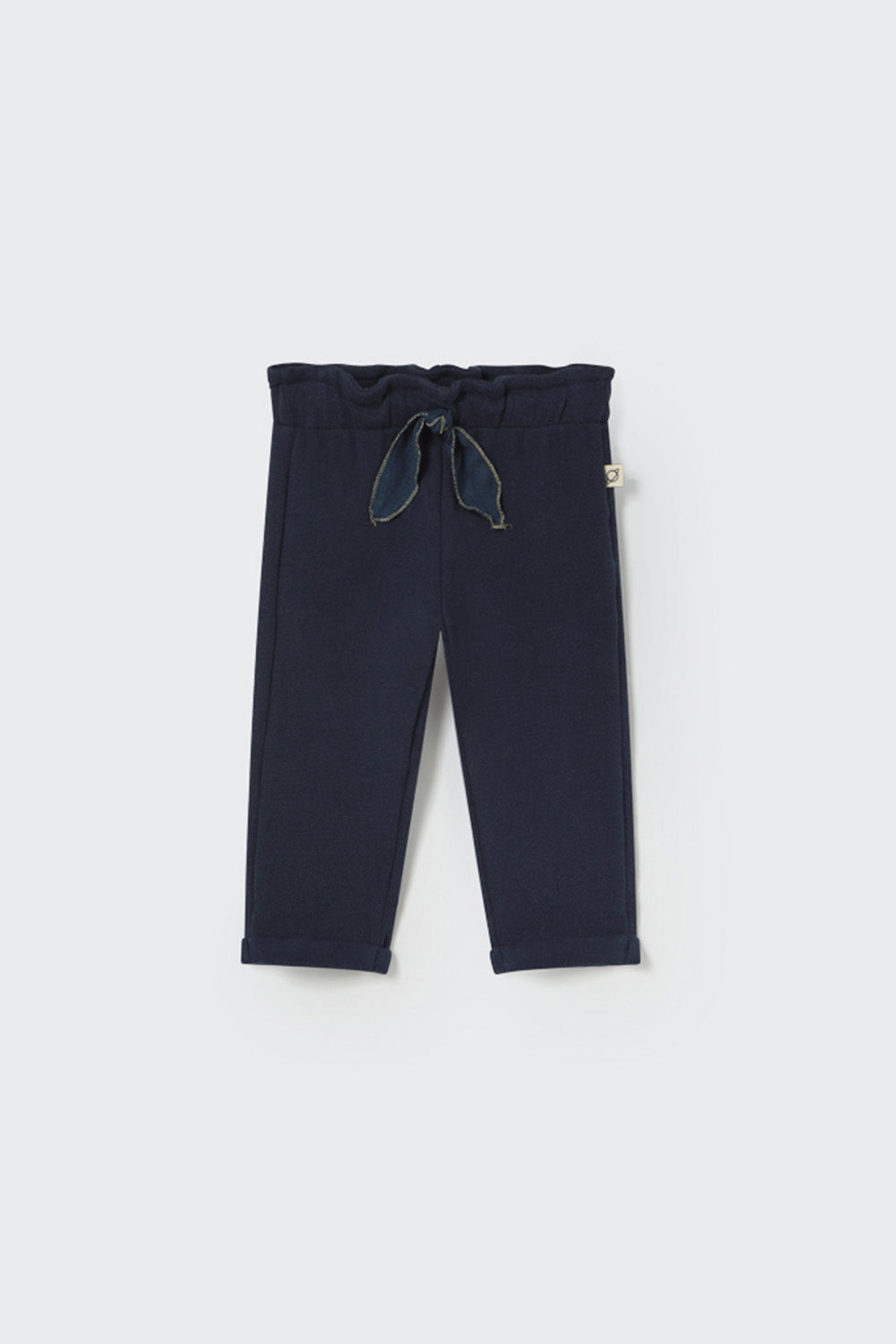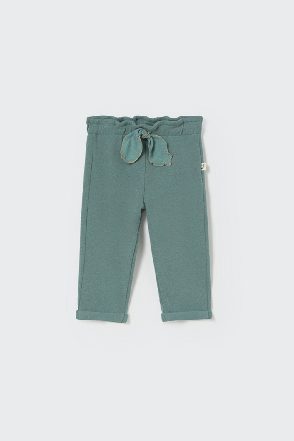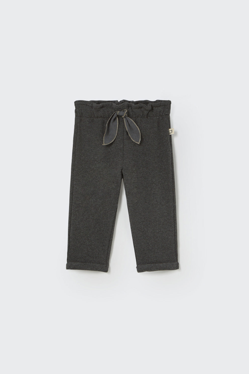 Estos pantalones para bebé están confeccionados en un punto suave y sedoso, cepillados por dentro y por fuera para un acabado cálido que mantiene a los pequeños abrigados. La cinturilla elástica luce un volante y un lazo decorativo en la parte delantera. Los bajos enrollados completan su diseño acogedor, convirtiéndolos en una prenda esencial para el día a día en climas fríos.
