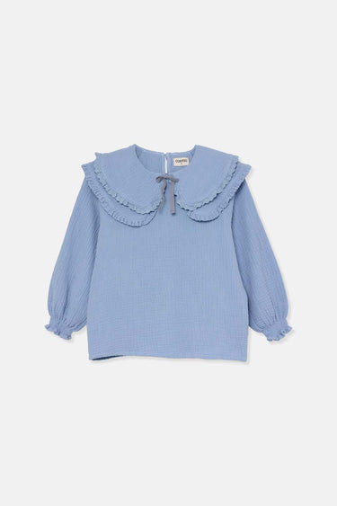BLUSA TEXTURIZADA CON DOBLE CUELLO DE VOLANTES